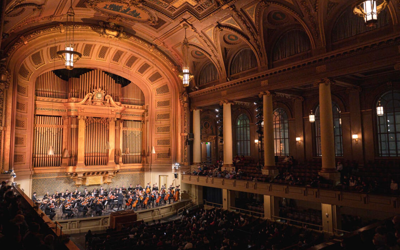 Yale Symphony Orchestra performing at Yale’s Woolsey Hall, frequently including special guest musicians from around the world.