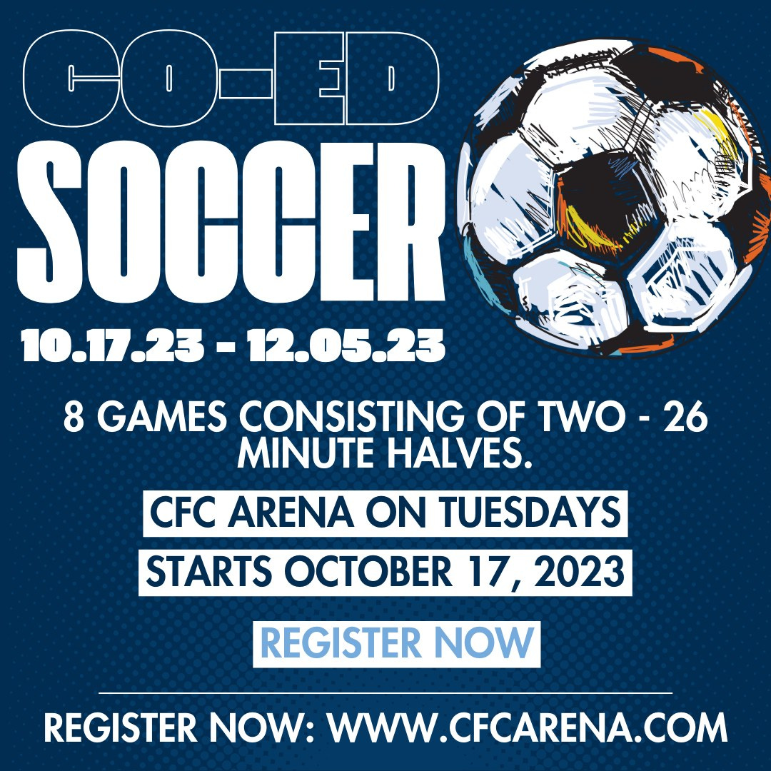 Co-Ed Adult Soccer begins @ CFC Arena. Details below.