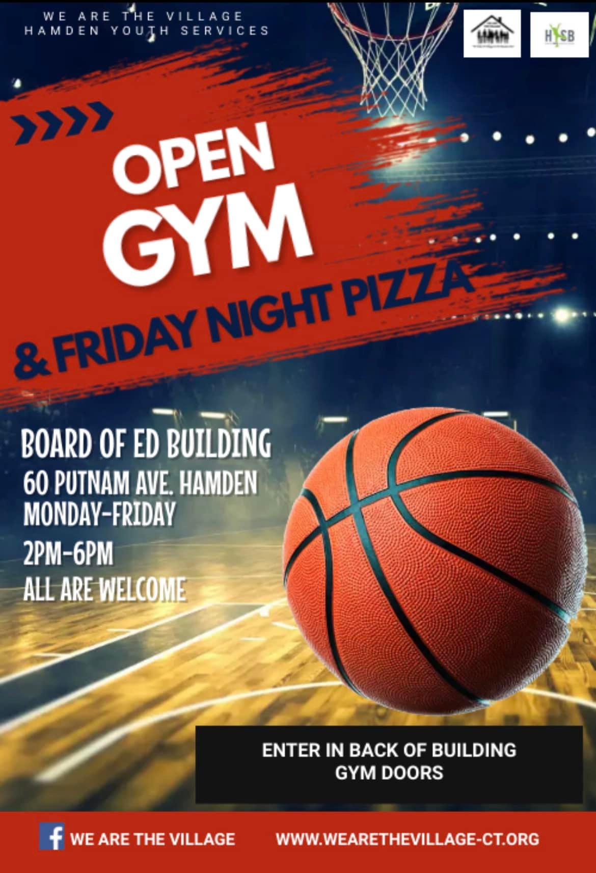 Open Gym for Hamden teens. 2-6pm. Details below.